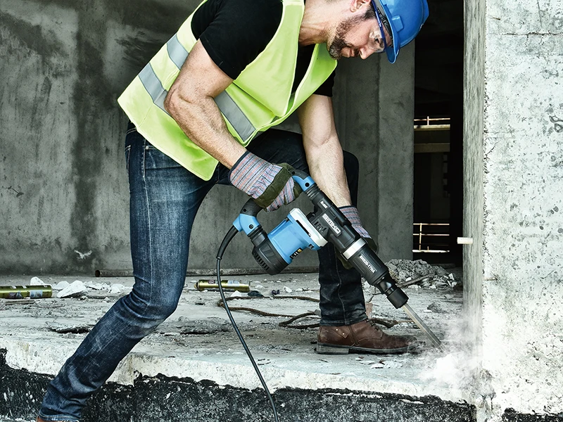 ● زاوية الإزميل قابلة للتعديل من خلال قفل مكون من 12 خطوة، مما يتيح لك تكييفها مع كل موقف عمل. (على سبيل المثال عند استخدام إزميل البلاط)