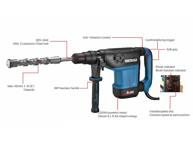 ● تصميم منخفض الاهتزاز والضوضاء مع طاقة عالية التأثير.