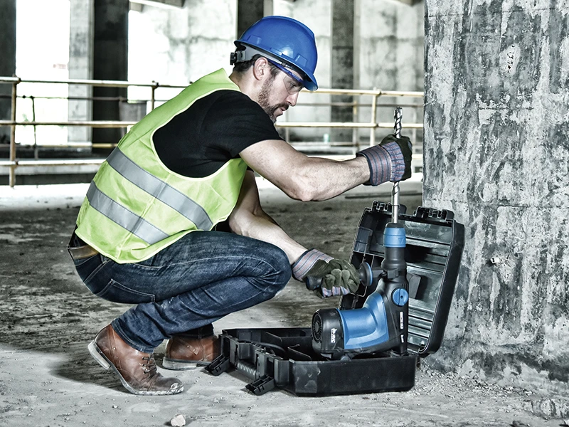 ● زاوية الإزميل قابلة للتعديل من خلال قفل مكون من 12 خطوة، مما يتيح لك تكييفها مع كل موقف عمل. (على سبيل المثال عند استخدام إزميل البلاط)